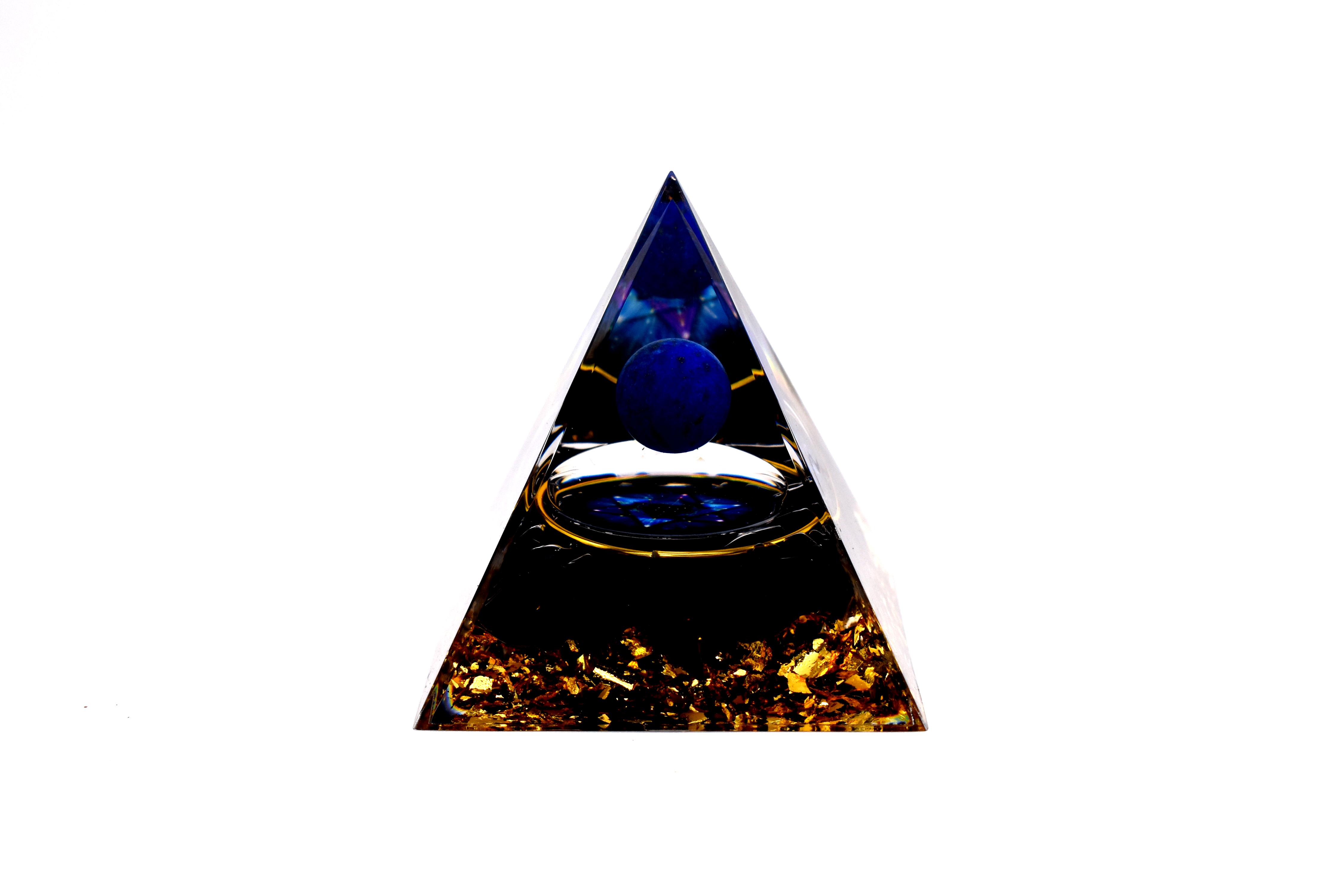 Resin Orgone Pyramid — Gold Lapis Lazuli Tree