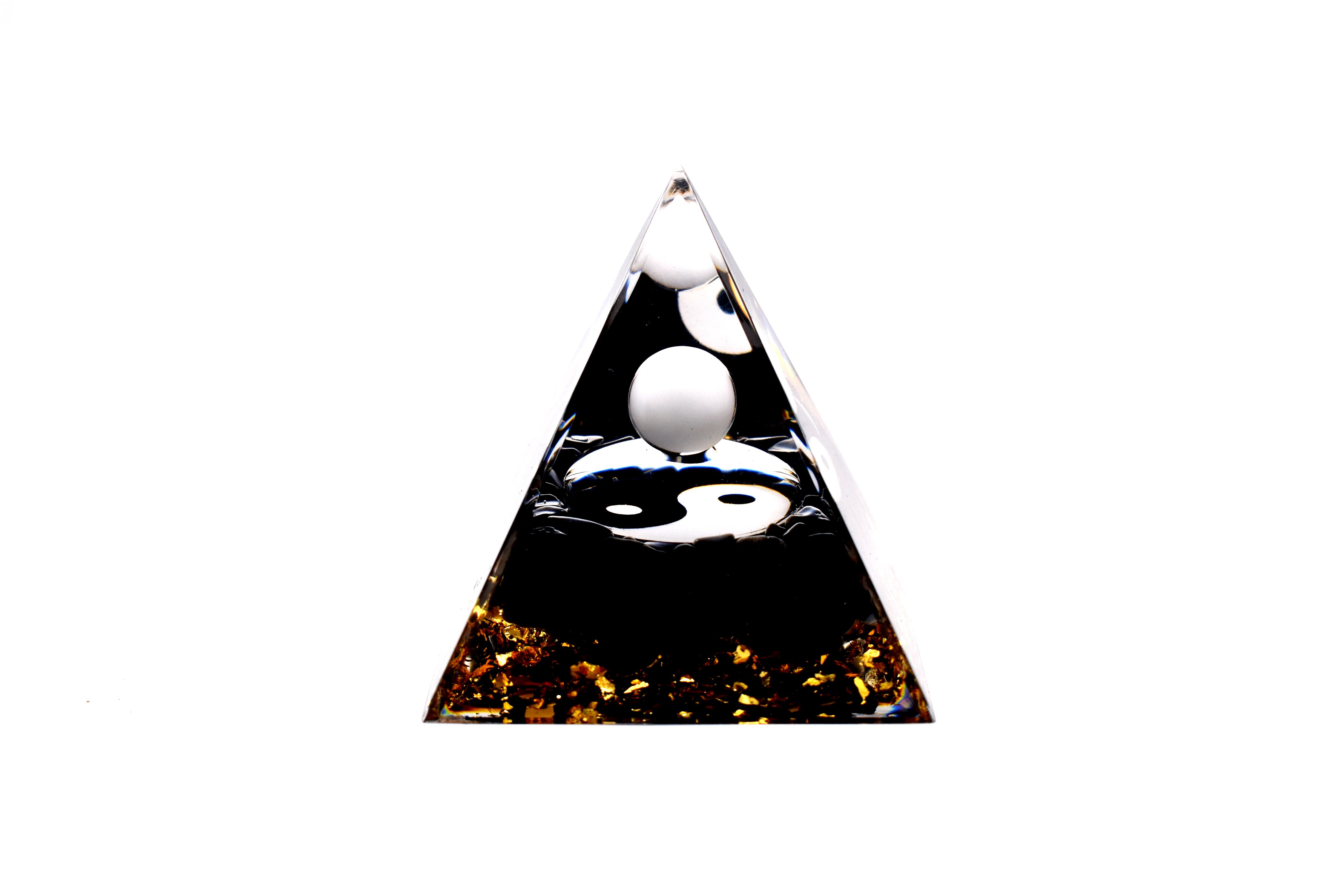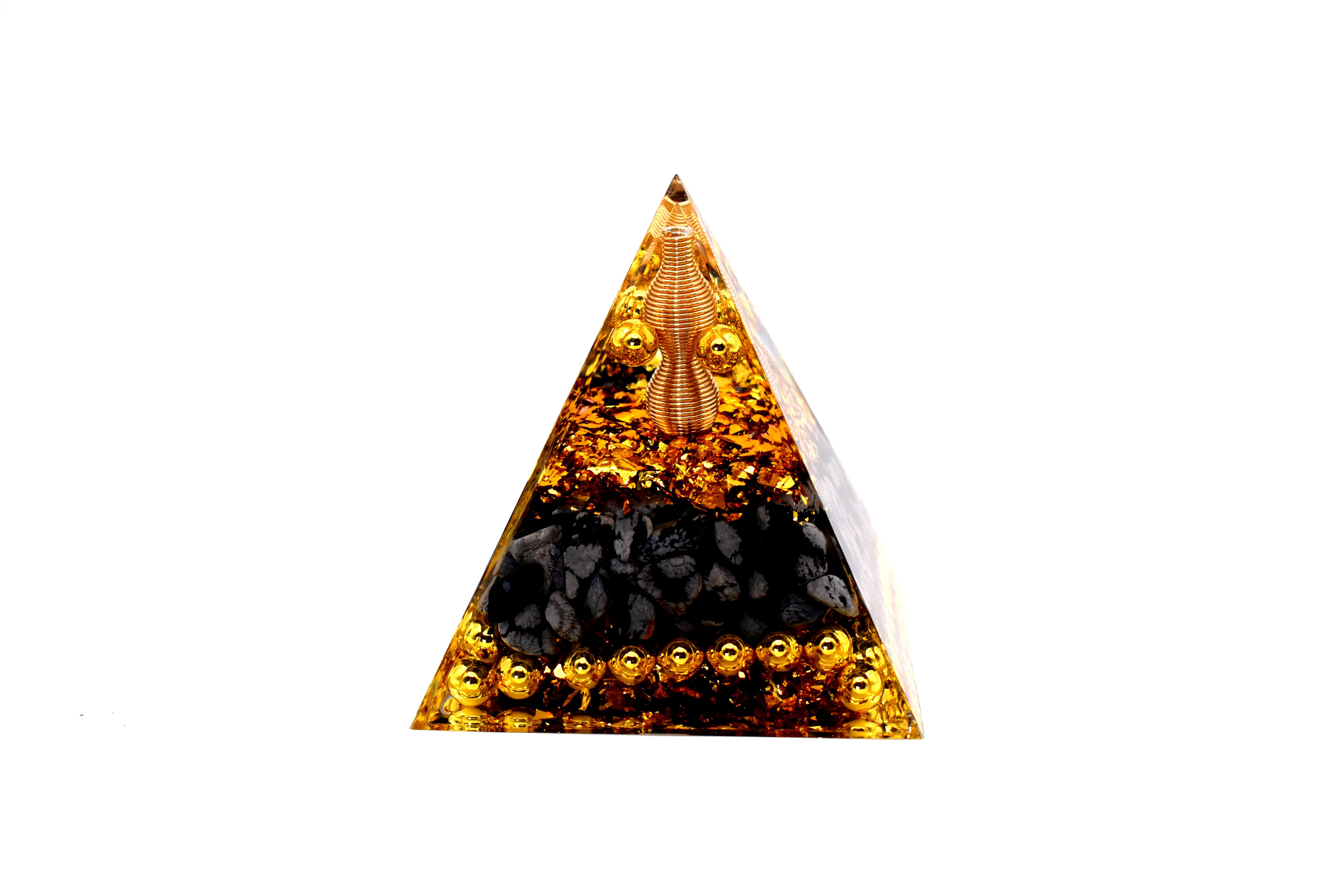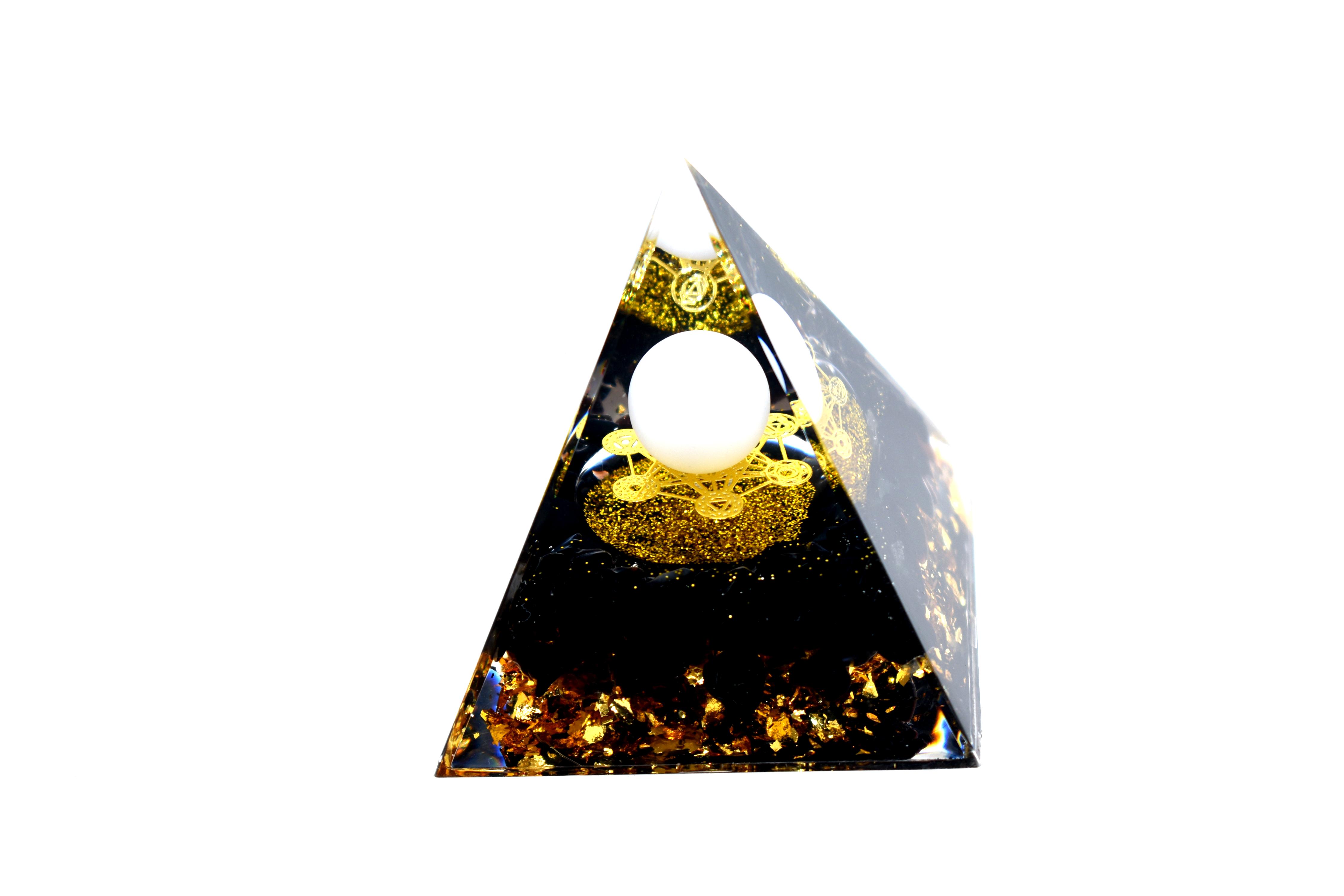 Resin Orgone Pyramid — Copper Coil with Black and Gold
