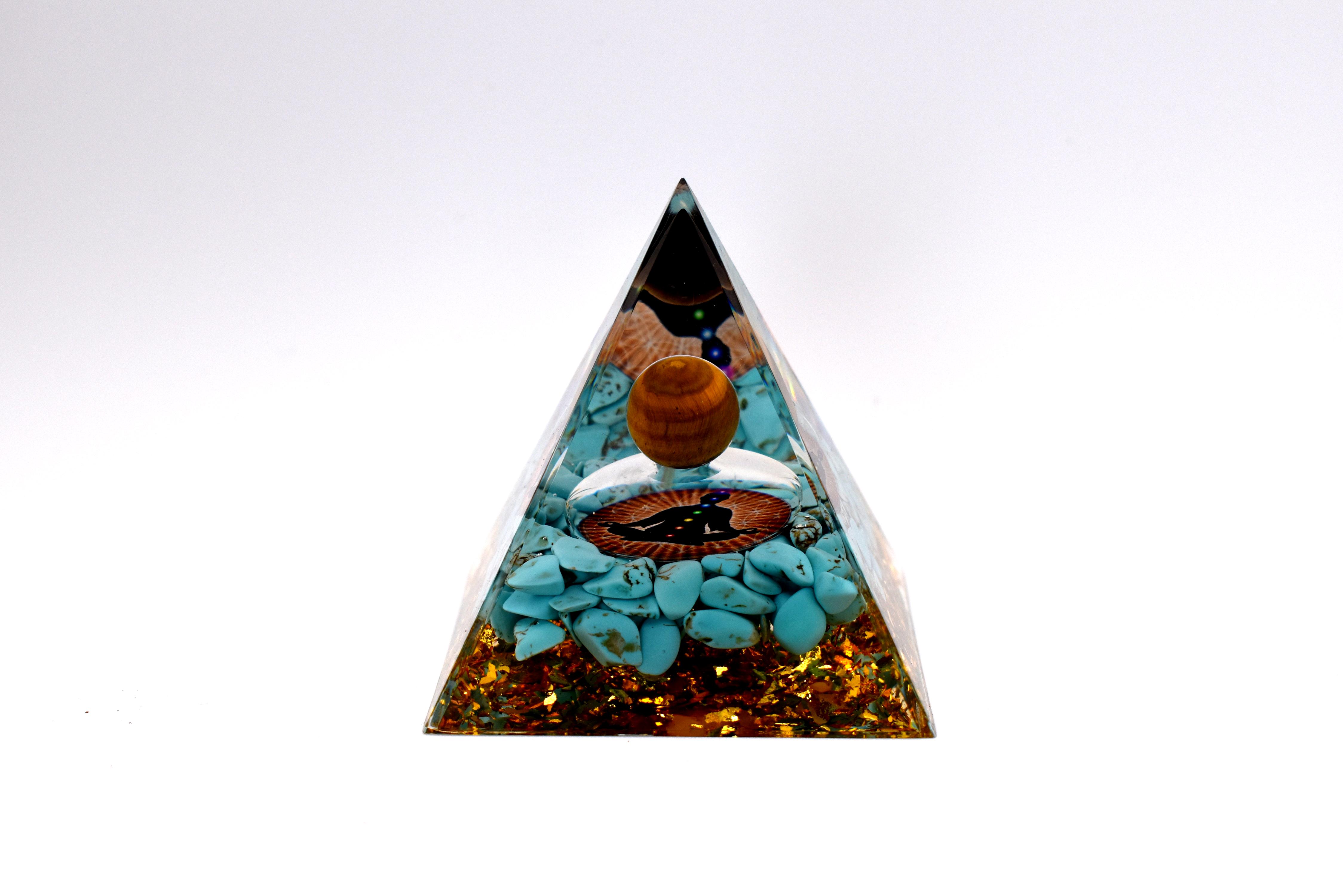 Resin Orgone Pyramid — Blue Hexagram Sphere